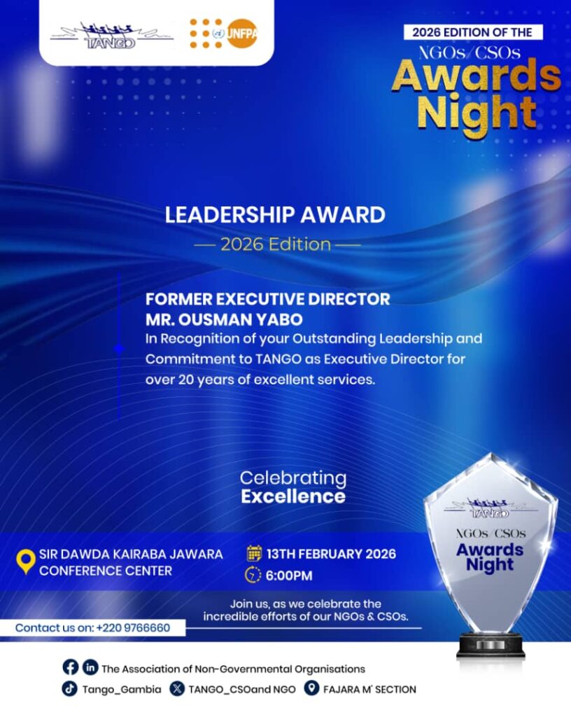 TANGO Leadership Award 2026 Mr. Ousman Yabo Former Executive Director