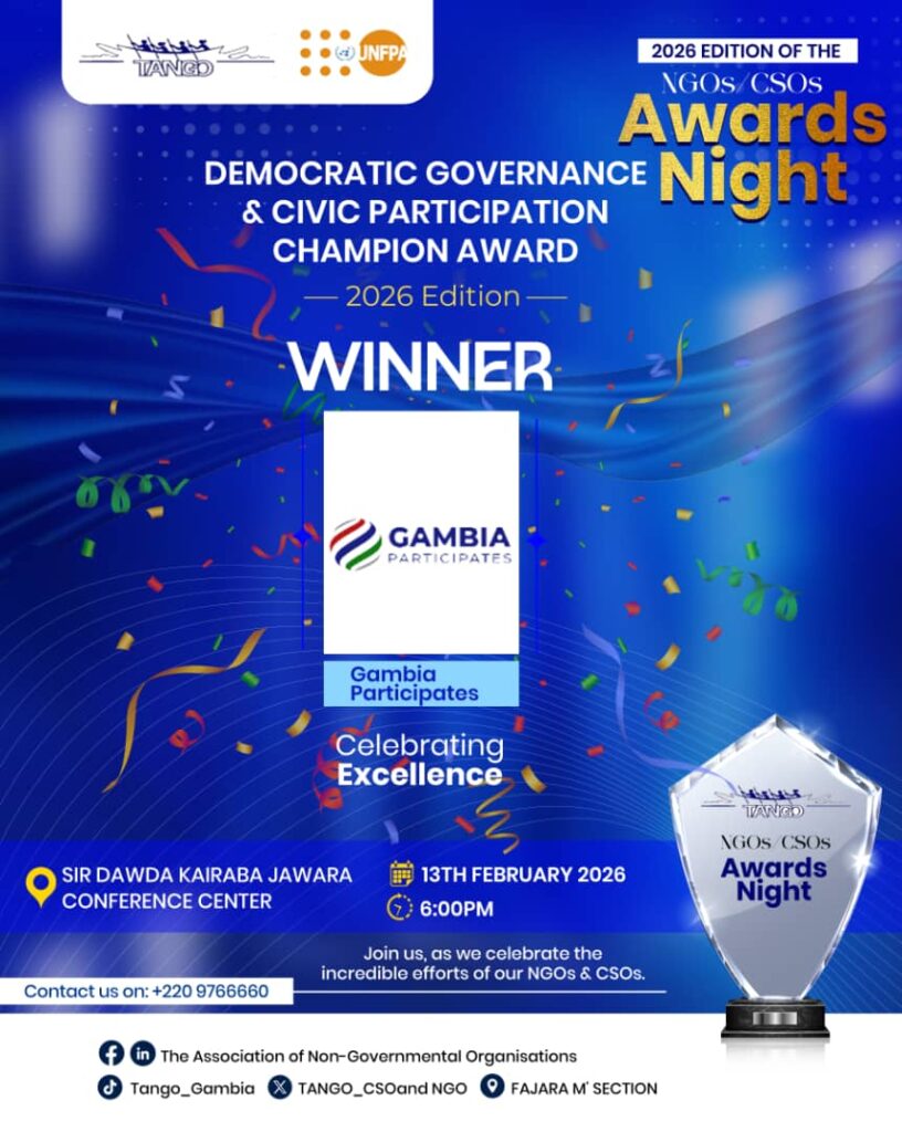 On February 13th, TANGO, in partnership with UNFPA, gathered to honor the incredible contributions of the Gambian NGO and CSO community. Below is the full gallery of the 2026 Award Winners.